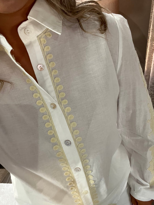 Lana White And Cream Embroidered Long Sleeve Shirt