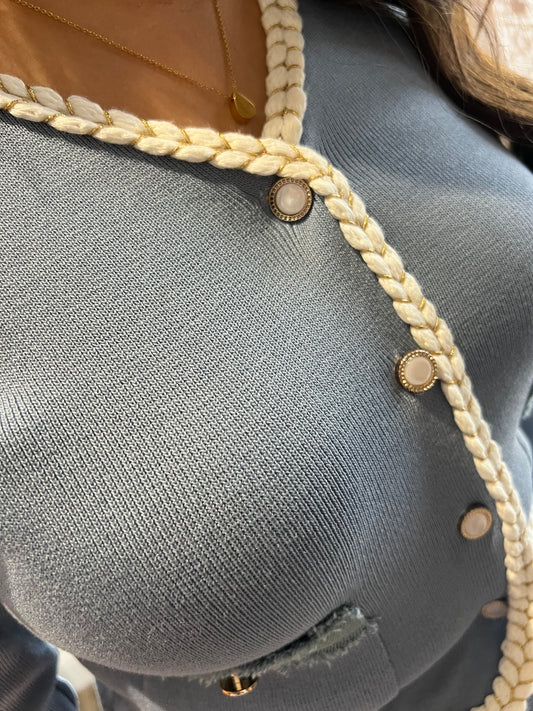 Chole Baby Blue Fine Knit Contrast Cardigan And Trouser Set